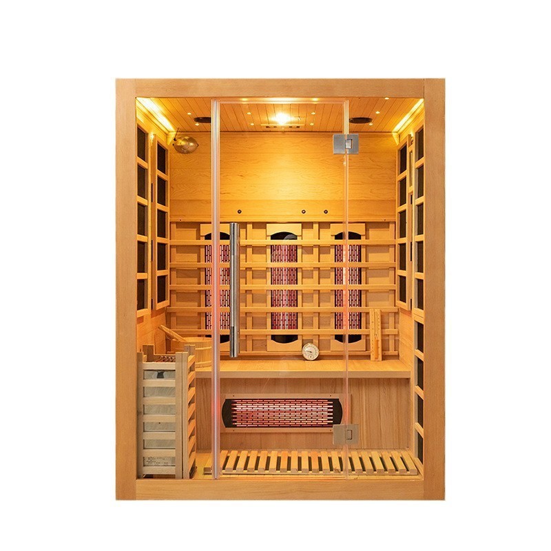 Premium trematerialer: Vi tilbyr tre trealternativer i topplag for 1-3 personers infrarød og dampbadstue, alle hentet fra Canada: Canada Pine (et hardt tre med høy styrke, god elastisitet og enkel bearbeiding og spikring); Canada Hemlock (har høy tretetthet, naturlig trekorn, god tekstur, korrosjonsbestandighet og ingen deformasjon); Canada Red Cedar (har høy tretetthet, elegant korn, korrosjonsbestandighet, ingen deformasjon og en naturlig treduft).