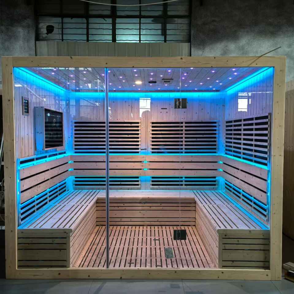 Invester i et badstue som redefinerer gruppevelvære. Vårt 5-10 personers badstuerom med langinfrarød badstue med LCD-TV er mer enn et produkt – det er et knutepunkt for avslapning, helse og samvær. Kontakt oss i dag for å utforske tilpasningsmuligheter og bringe denne førsteklasses velværeløsningen til rommet ditt.