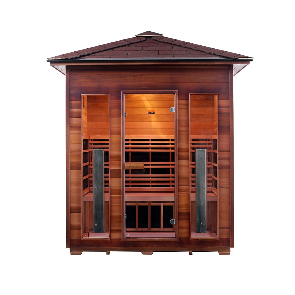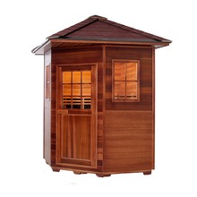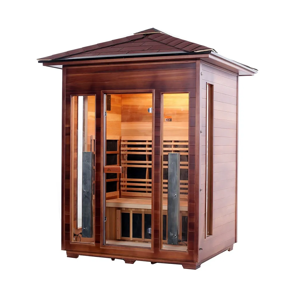 Denne utendørs badstuen er laget av kanadisk vestlig rød sedertre eller kanadisk hemlock. Treverket har korrosjons- og fuktbestandighet samt strukturell stabilitet. Utstyrt med fjerninfrarød karbonfibervarmeteknologi, varmes den raskt opp og fordeler varmen jevnt. Egnet for utendørsmiljøer som gårdsplasser, balkonger, villahager, bassengområder og feriesteder.
